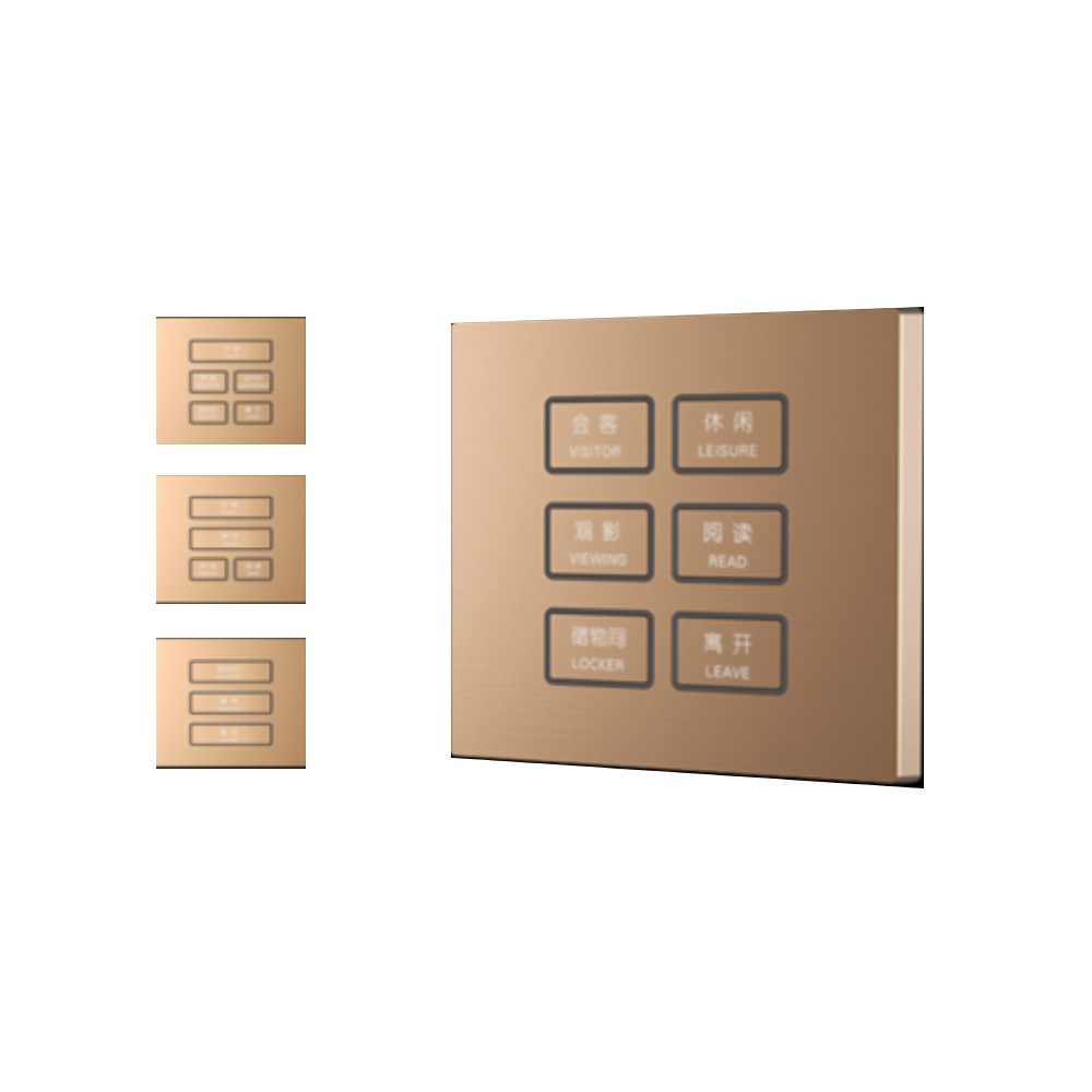 功能指示:液晶显示,灯光控制,窗帘控制,空调控制、新风控制、地暖控制。